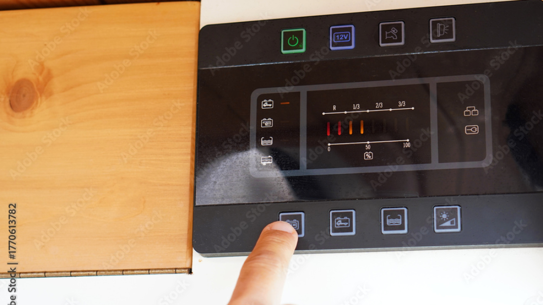Bruno m’explique que Vanbox propose un tableau de bord intelligent et compact, doté d’un écran tactile, qui centralise toutes les informations vitales à bord d’un véhicule de voyage: